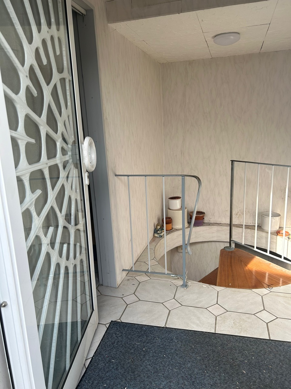 An der rückwärtigen Grundstücksgrenze wurde ein Nebengebäude mit Bauantrag 1973 zu einer Art Maisonette Wohnung mit 3- Zimmern Küche und Bad umgebaut. Küche und Bad sind über eine Wendeltreppe zum Untergeschoss zu erreichen.
